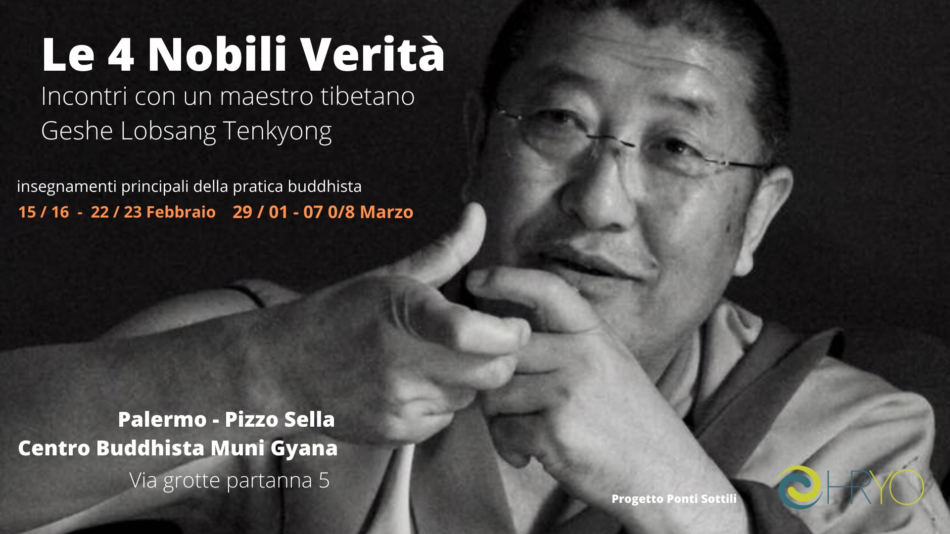 Quattro incontri, ciascuno dei quali dedicato ad una delle nobili verità, in cui sarà possibile approfondire tale tema direttamente con il Ven. Geshe Lobsang Tenkyong.